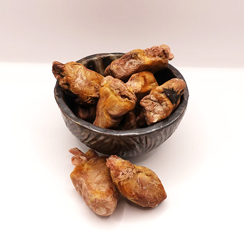 Frysetørret kød reducerer i gennemsnit vægten med 80 %. Så posens indhold svarer ca. til 250 gram råt kød.